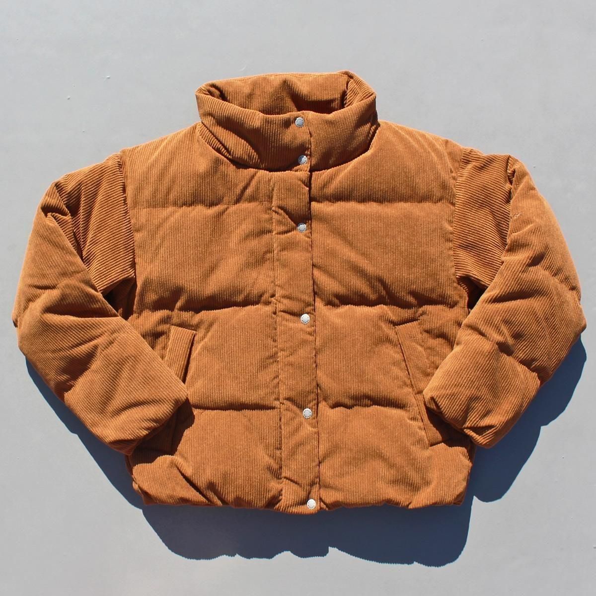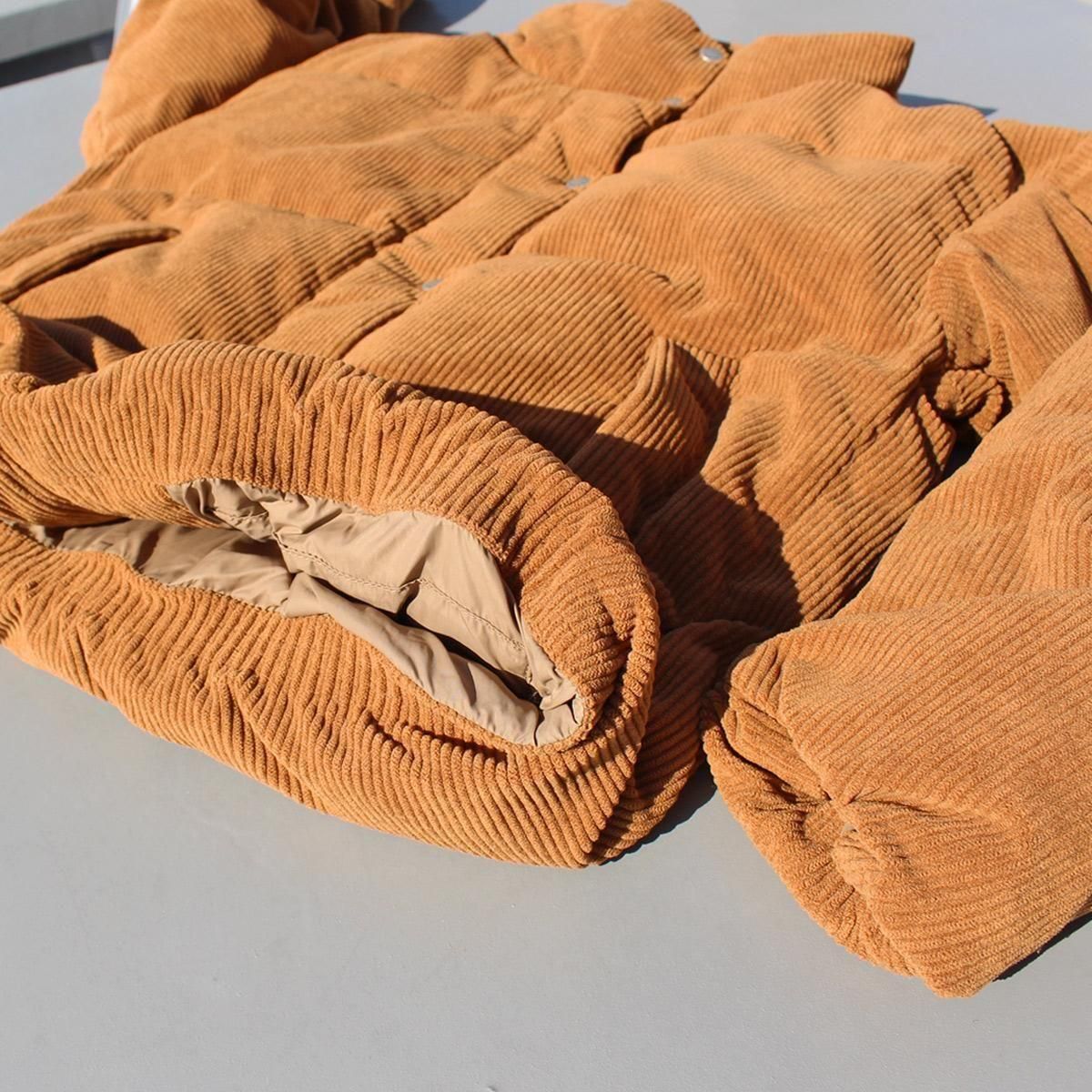 カジュアルなコーデュロイのダウンジャケット